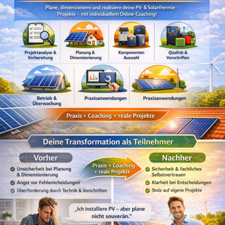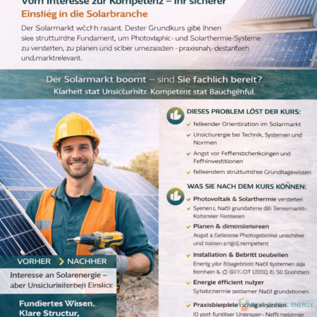 • Grundkurs Photovoltaik – Planung in der digitalen Energieberatung “Zugelassen zur Verlängerung des Eintrags in der EEE-Liste des Bundes”