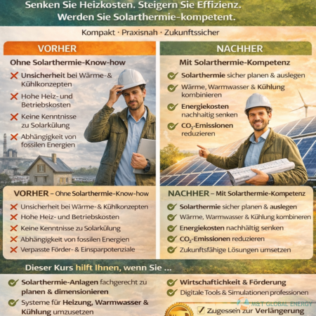 • GRUNDKURS SOLARTHERMIE (FÜR WÄRMEGEWINNUNG UND KÜHLUNG)„Zugelassen als Fortbildung zur Verlängerung des Eintrags in der EEE-Liste des Bundes.“